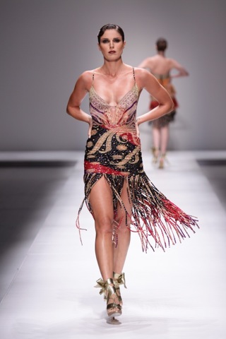 . She specializing in cocktail dresses and evening wear and I was the most excited with her because her clothes are so eclectic and different. Using feather and unusual walk of nature i I had a millions bucks I’d be sure to put her pieces in my wardrobe.